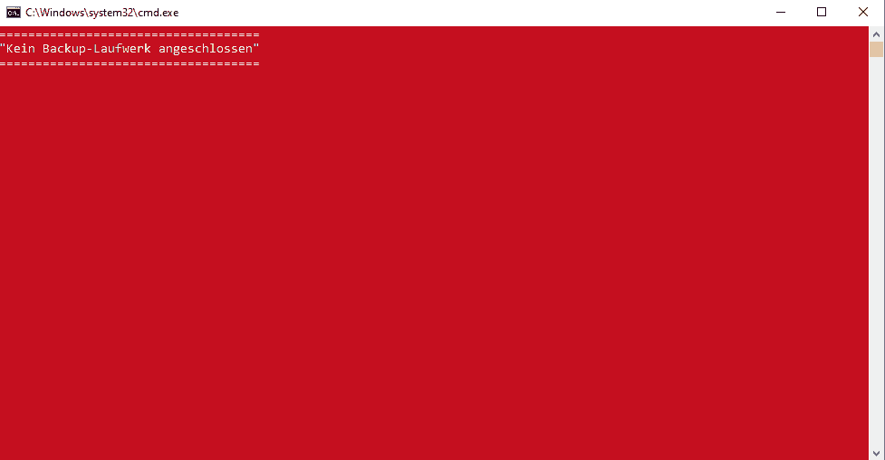 color 4f & call :print "Kein Backup-Laufwerk angeschlossen!" 20